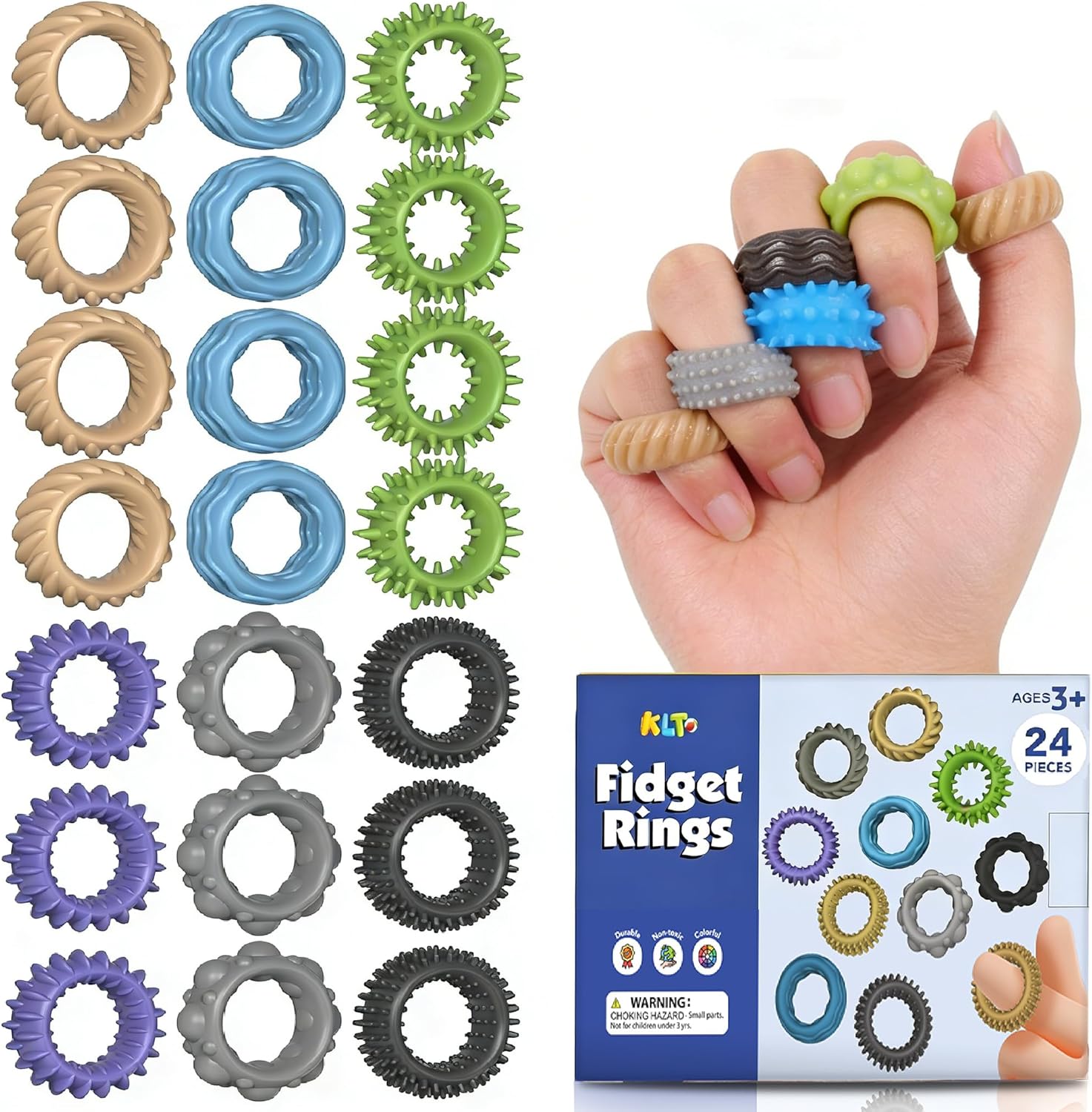 4.99 24 Pack Textured Finger Rings (Reg.9.99)